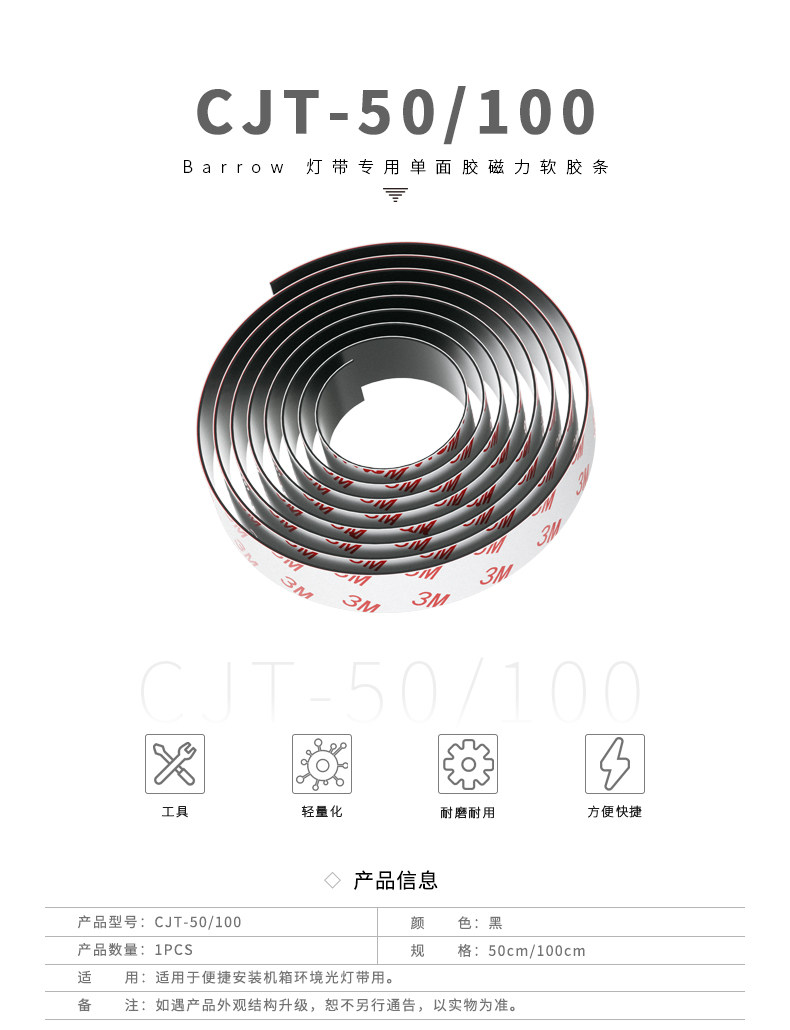 Barrow 灯带专用单面胶磁力软胶条 无痕粘灯带磁力条 CJT-50