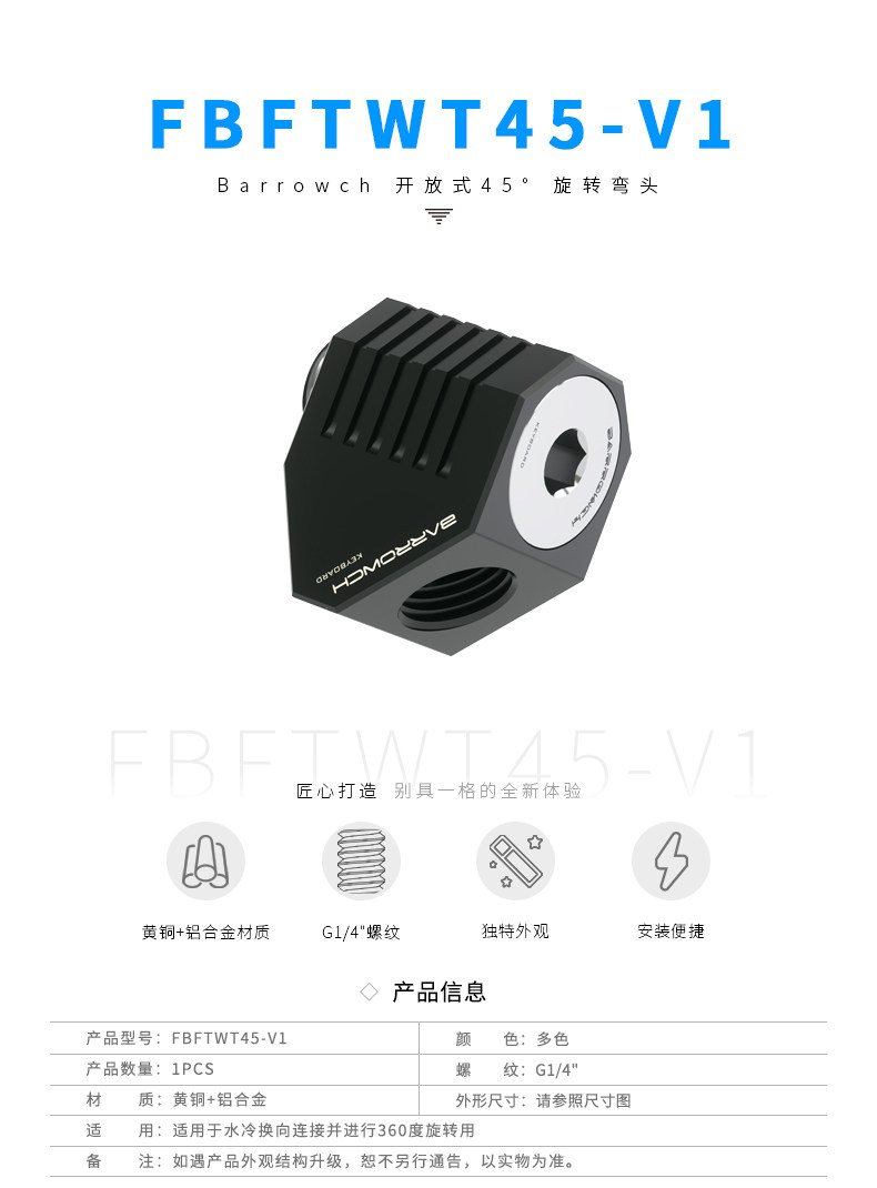 Barrowch 开放式45度 旋转弯头 FBFTWT45-V1