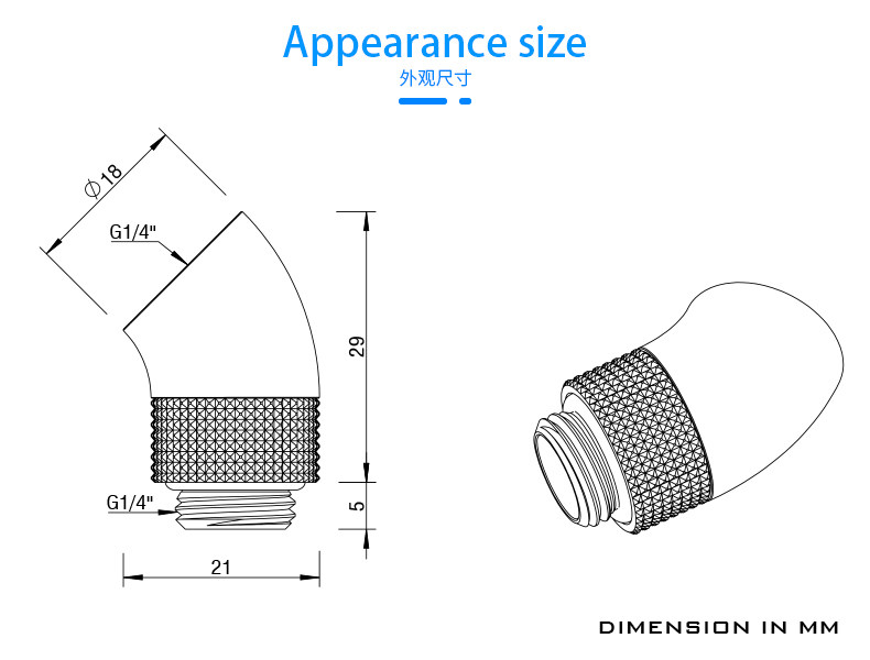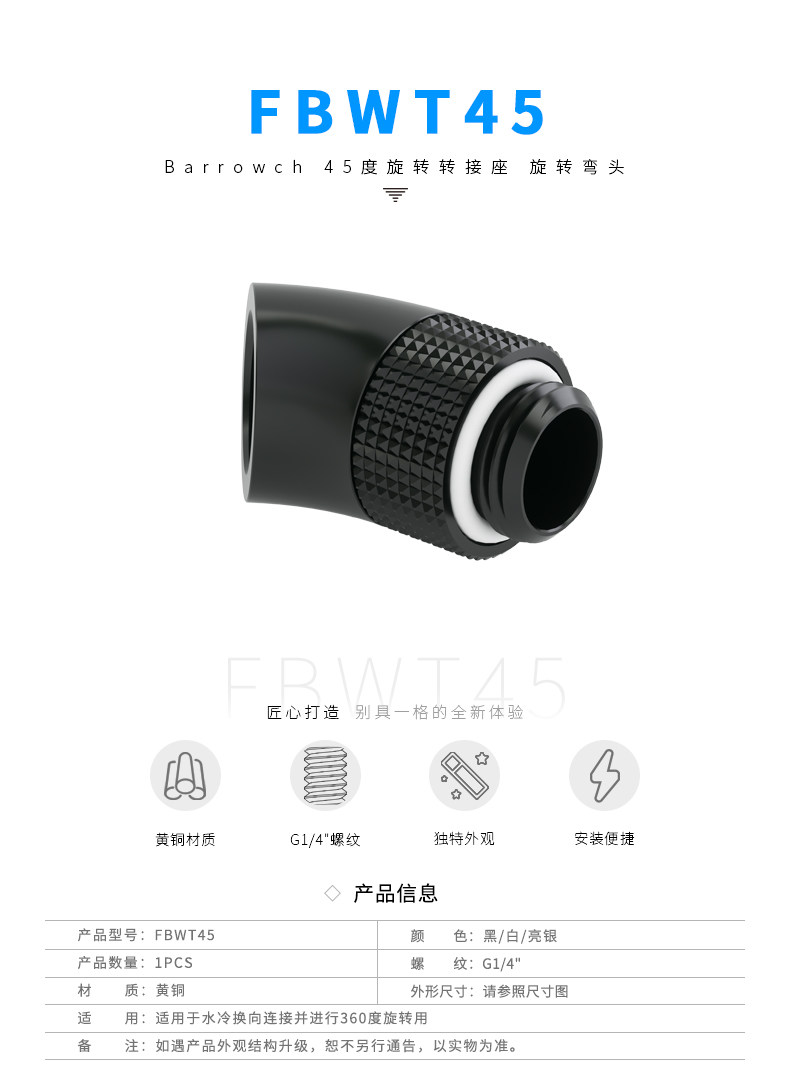 Barrowch G1/4"黑/亮银/白 45度旋转转接座 旋转弯头 FBWT45