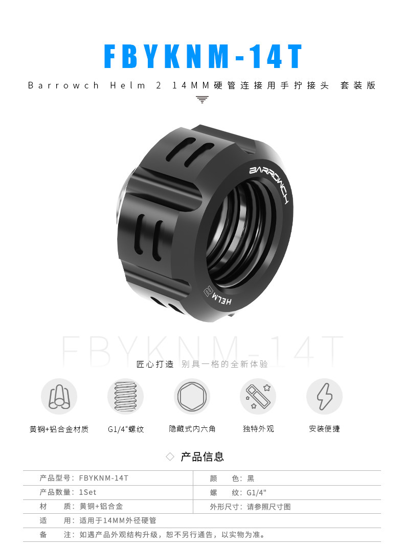 Barrowch Helm 2 14MM硬管连接用手拧接头 套装版 FBYKNM-14T