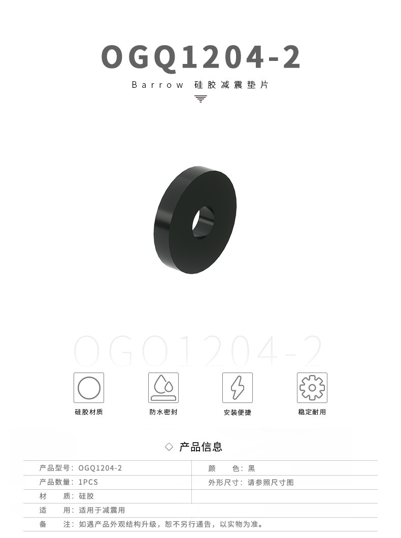 Barrow 黑色 硅胶减震垫片 OGQ1204-2