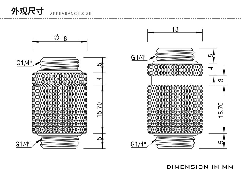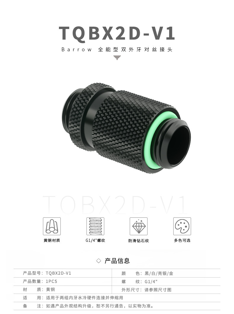 Barrow G1/4 黑/亮银/白 全能型双外牙对丝接头 TQBX2D-V1