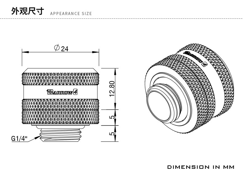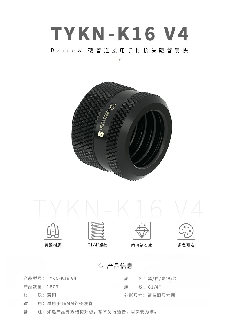 Barrow 黑/亮银/白/金 硬管连接用手拧接头硬管硬快TYKN-K16 V4