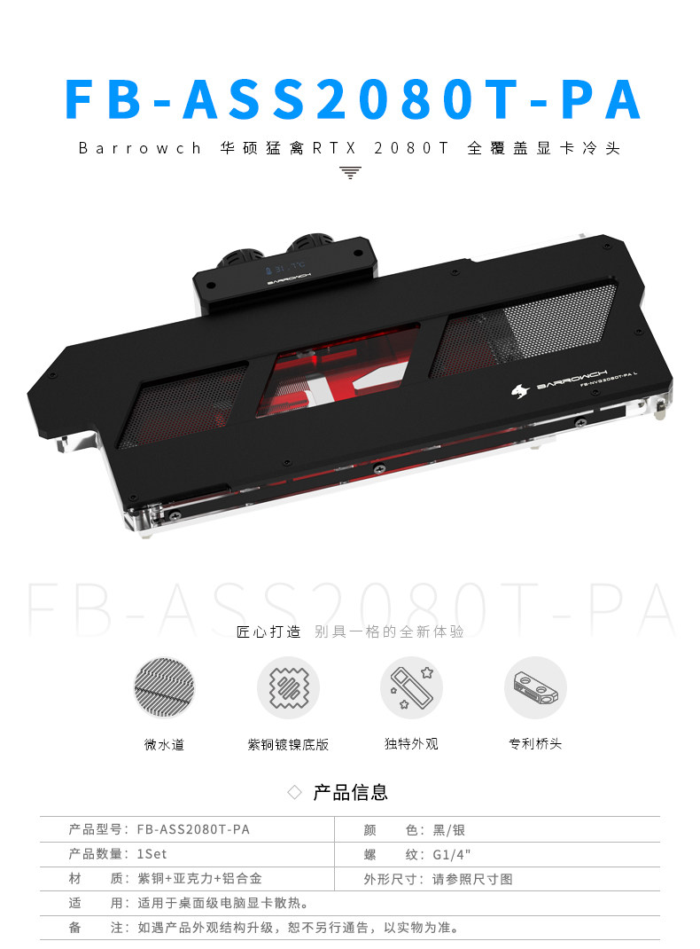 Barrowch 华硕猛禽RTX 2080T 全覆盖显卡水冷头 FB-ASS2080T-PA