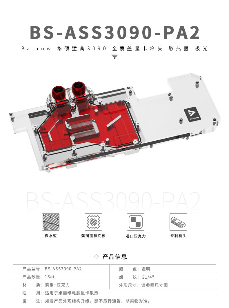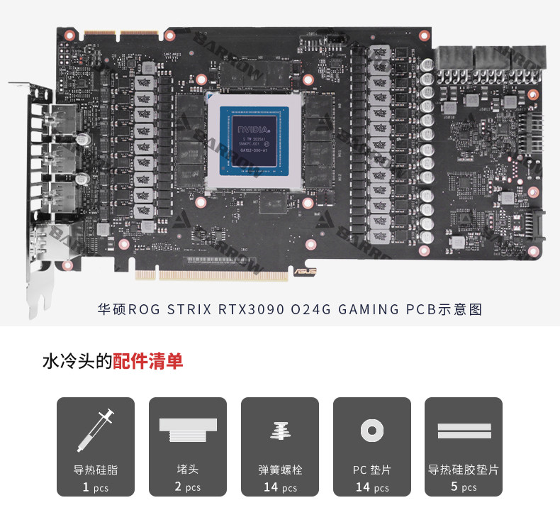 Barrow 华硕猛禽3090 显卡冷头 水冷背板 散热器 BS-ASS3090-PA2