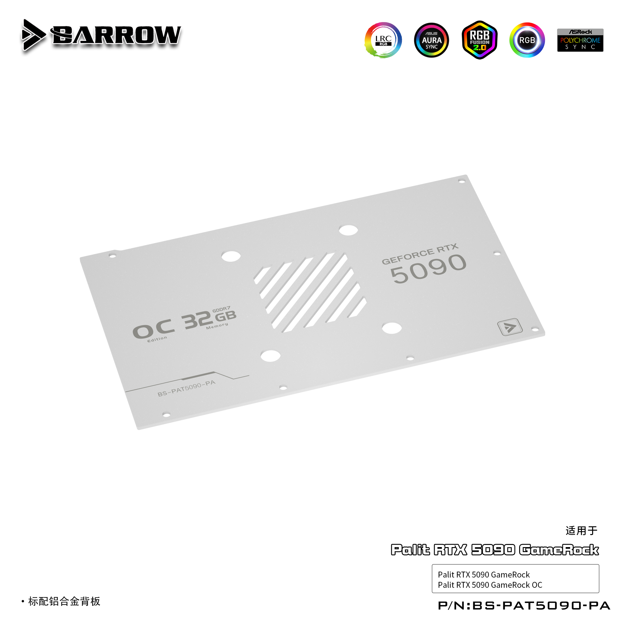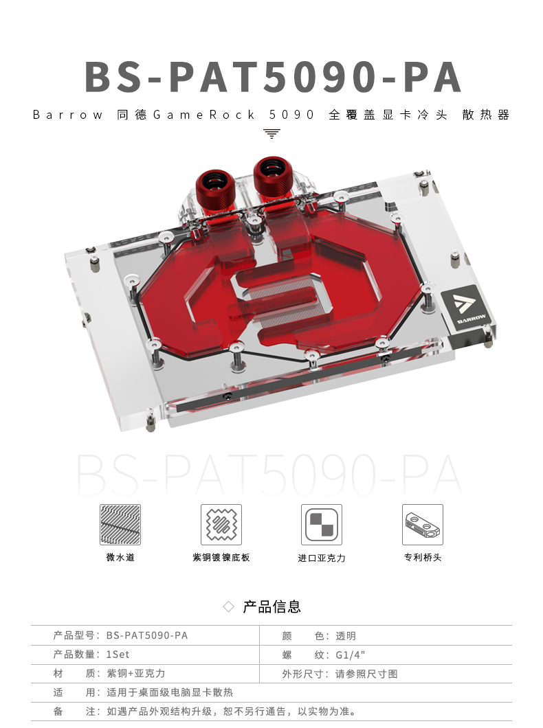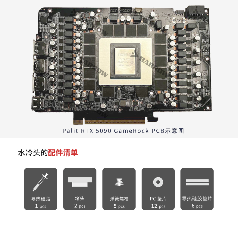 Barrow 同德GameRock 5090全覆盖显卡水冷头散热器 BS-PAT5090-PA