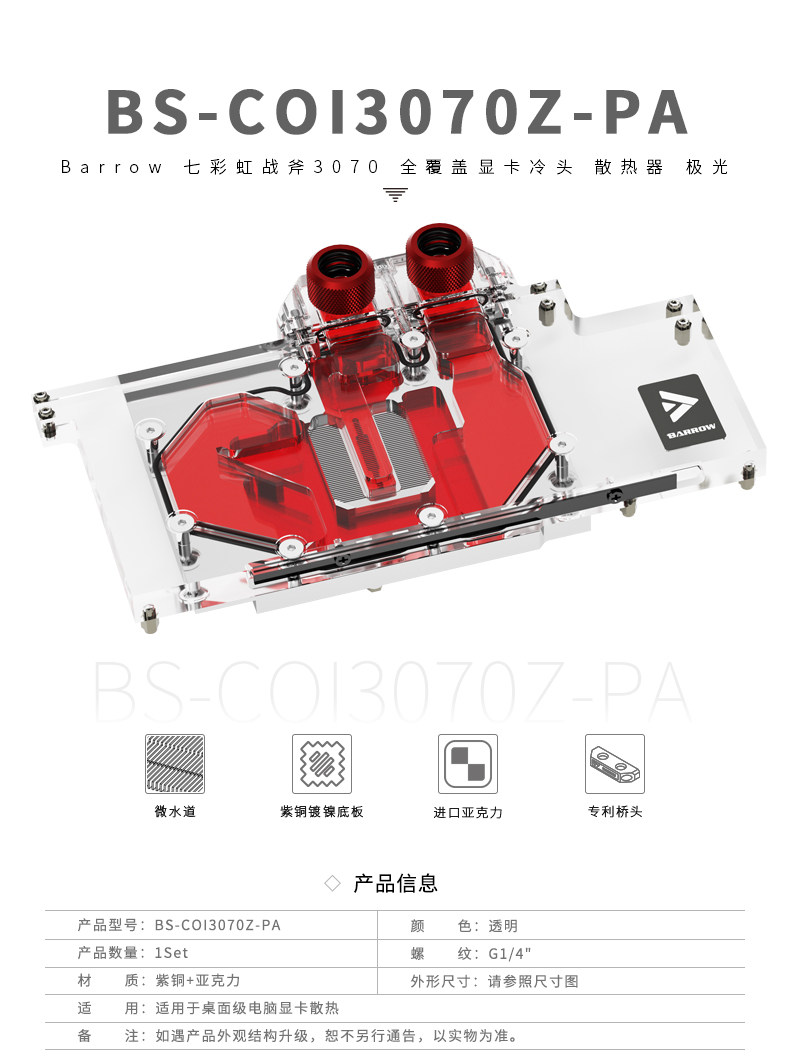 Barrow 七彩虹战斧3070 全覆盖显卡水冷头 散热器 BS-COI3070Z-PA