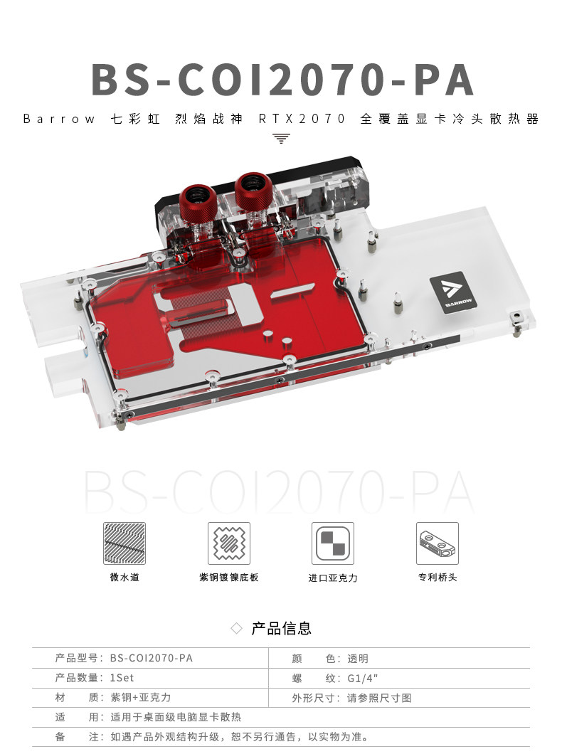Barrow 七彩虹烈焰战神RTX2070 全覆盖显卡冷头极光BS-COI2070-PA
