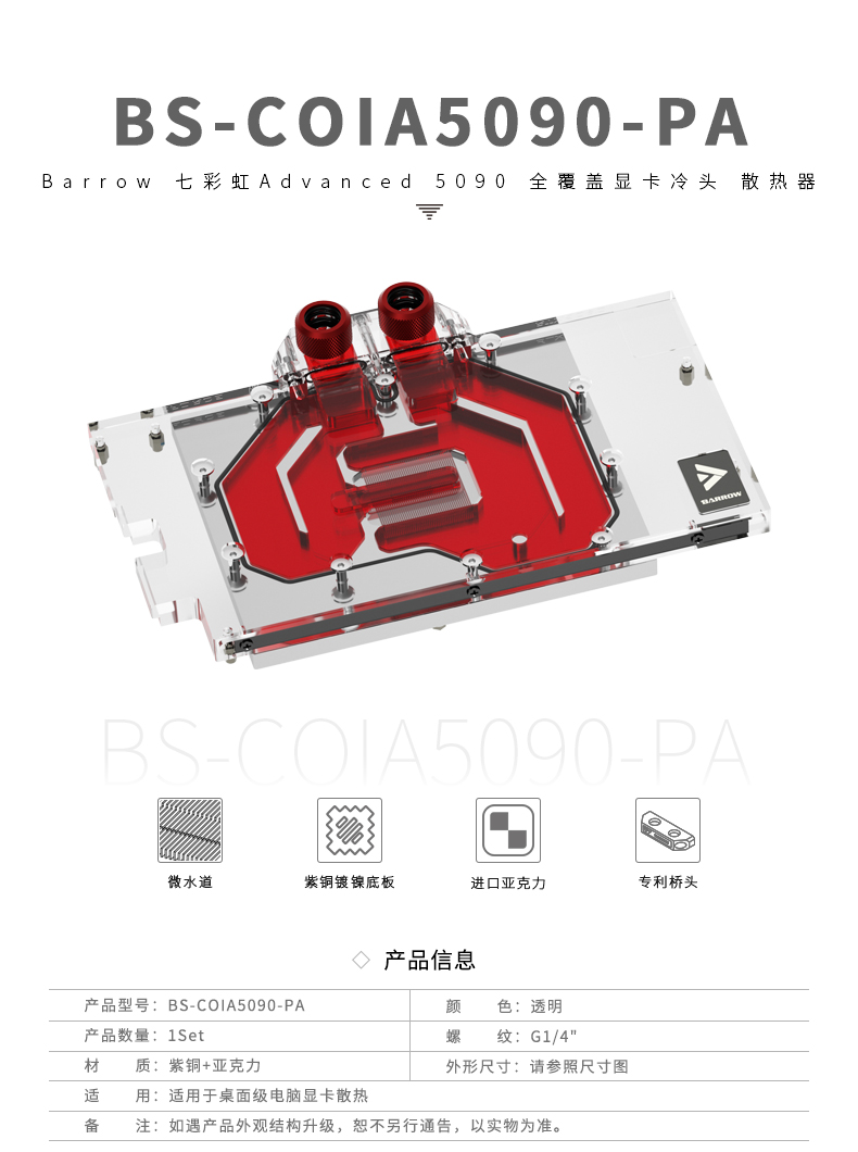 Barrow七彩虹Advanced5090全覆盖显卡水冷头散热器BS-COIA5090-PA