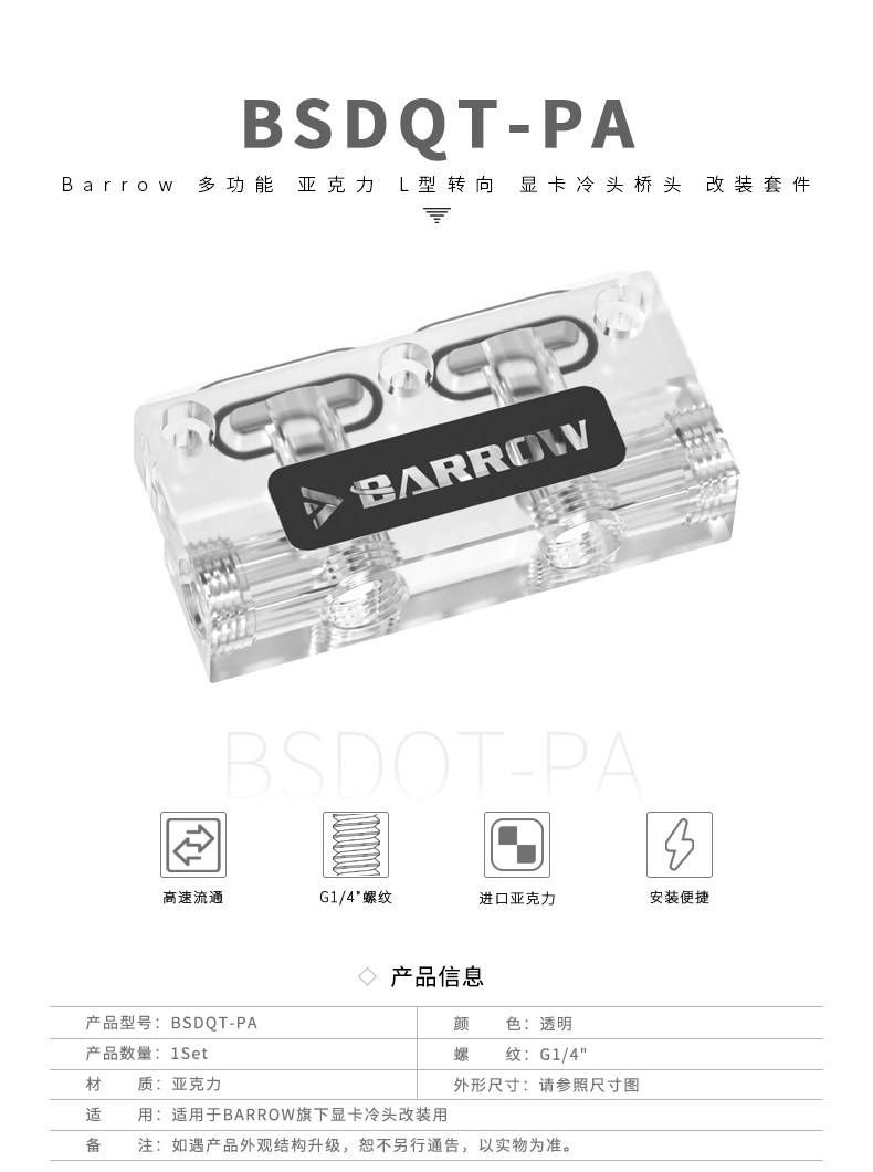 Barrow 多功能 亚克力 L型转向 显卡冷头桥头 改装套件 BSDQT-PA