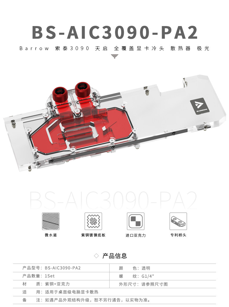 Barrow 索泰 3090天启 全覆盖显卡冷头 散热器 BS-AIC3090-PA2