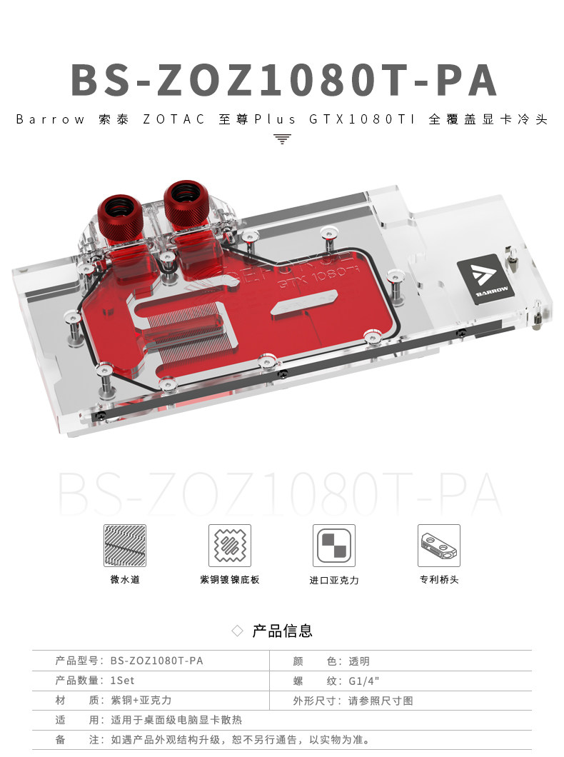 Barrow 索泰ZOTAC Plus GTX1080TI 显卡冷头 BS-ZOZ1080T-PA
