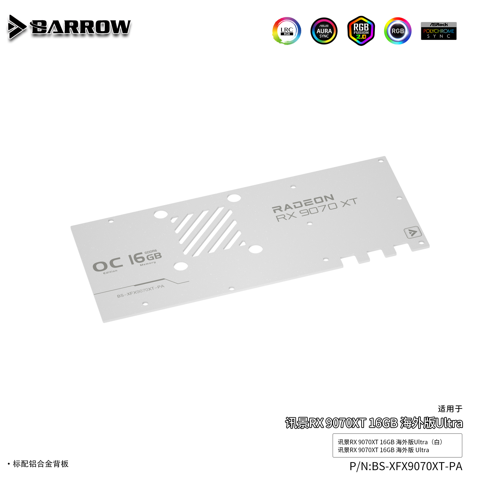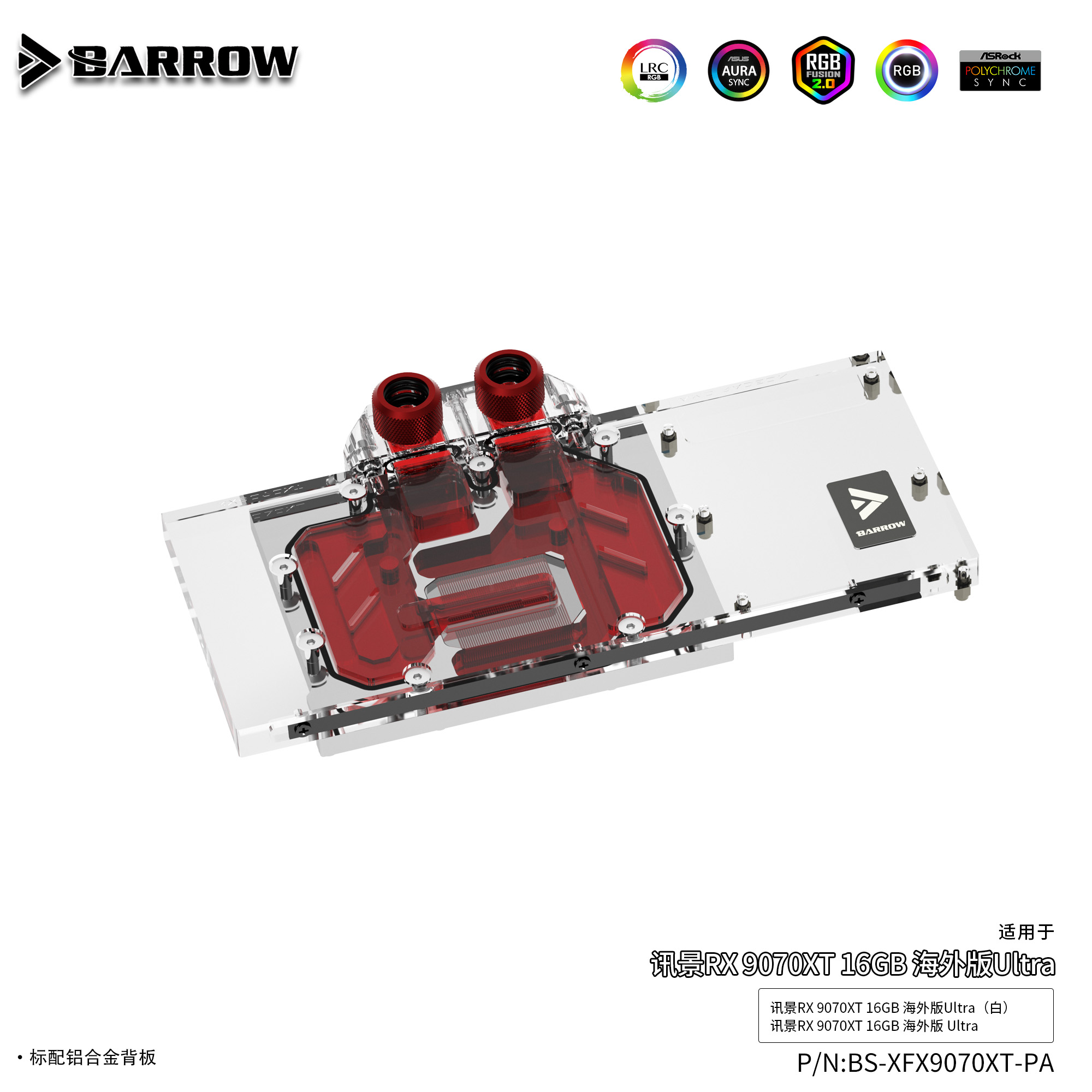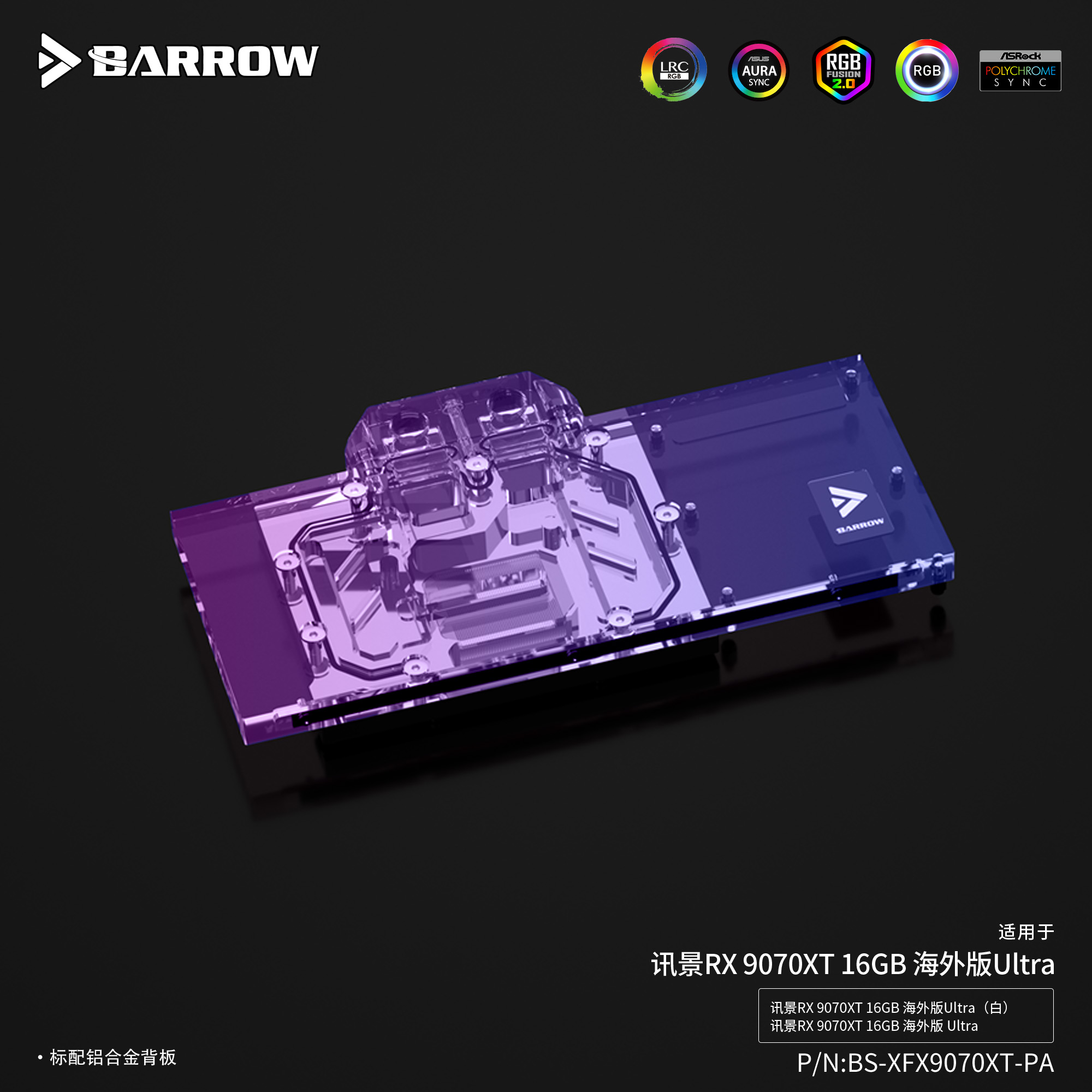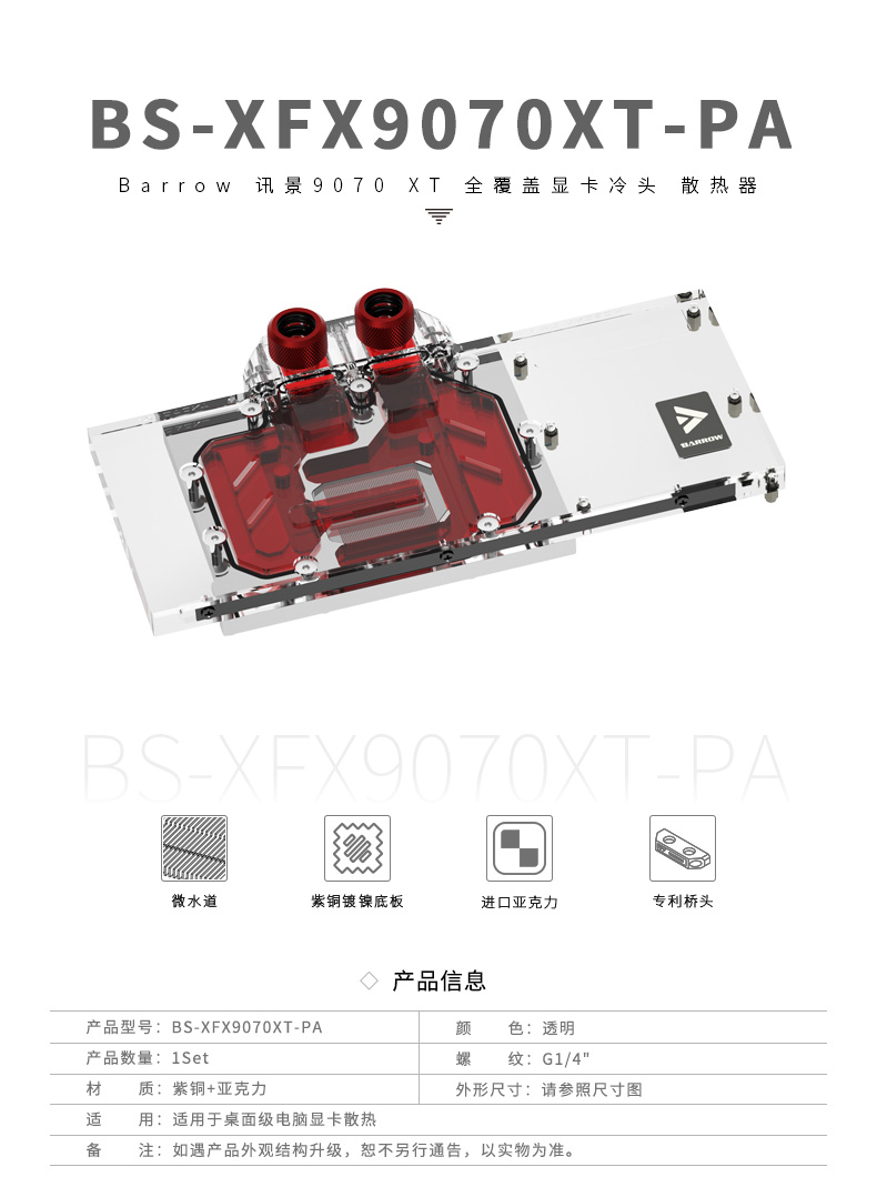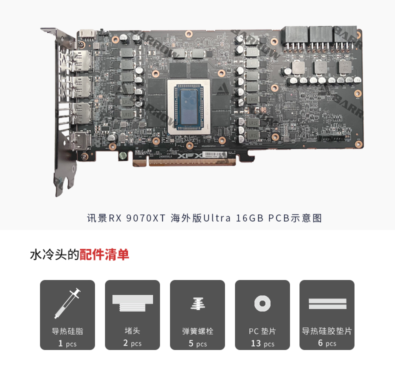 Barrow 讯景RX 9070XT 全覆盖显卡水冷头散热器 BS-XFX9070XT-PA