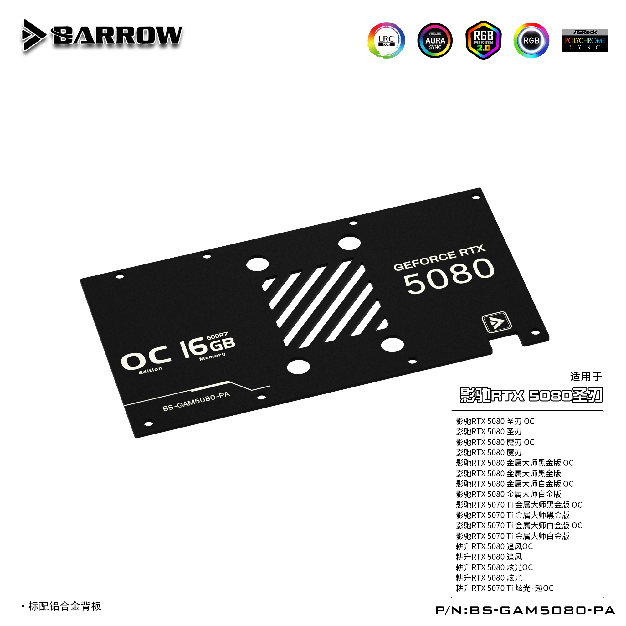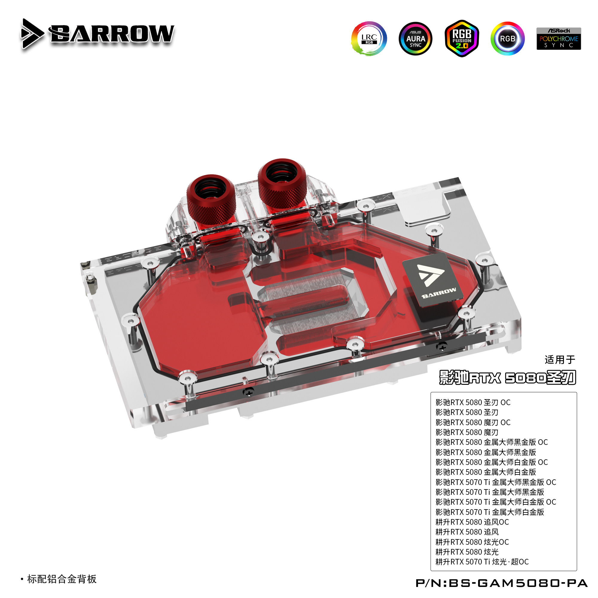 Barrow 影驰耕升 5080圣刃 全覆盖显卡水冷头散热器 BS-GAM5080-PA