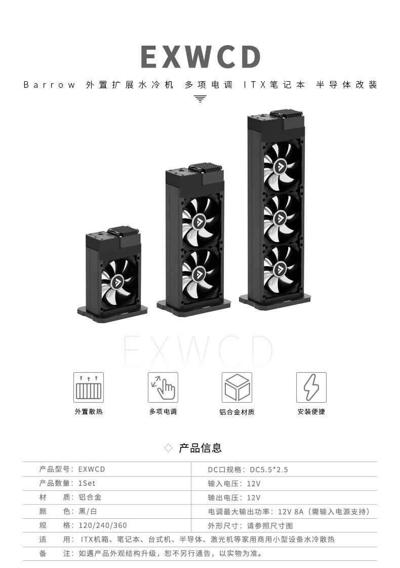 BARROW 泵排一体电调外置水冷机ITX笔记本半导体散热改装 EXWCD