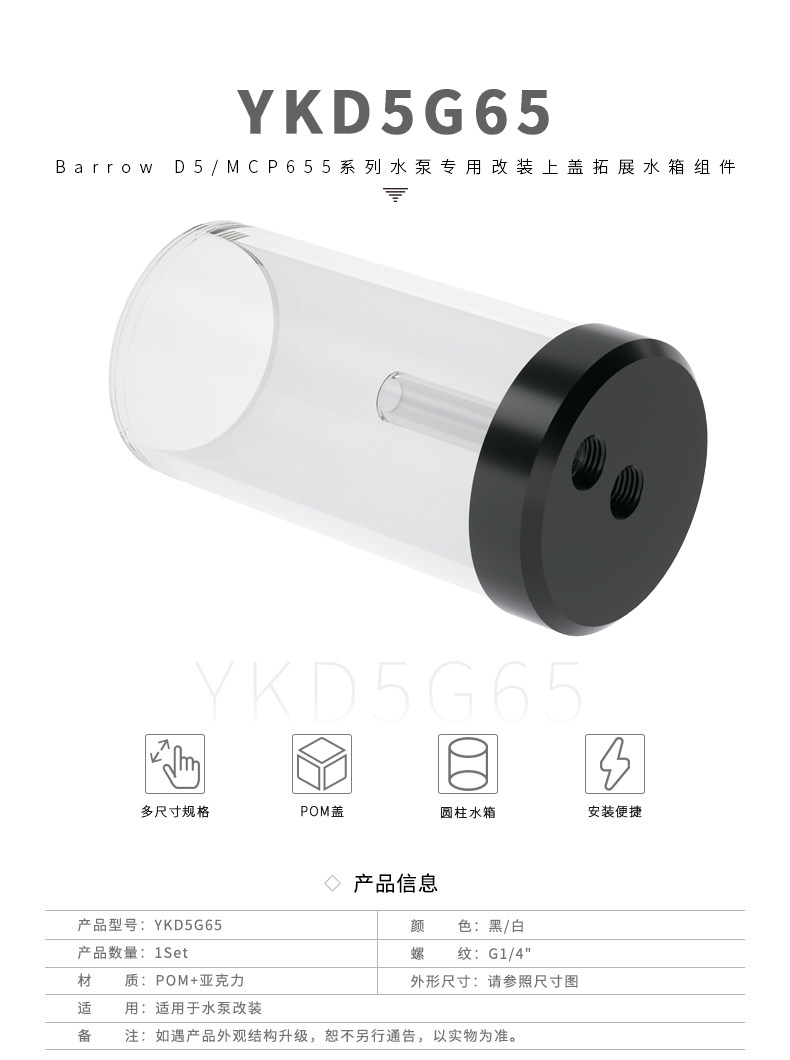 Barrow D5/MCP655系列水泵专用改装上盖拓展水箱组件 YKD5G65系列