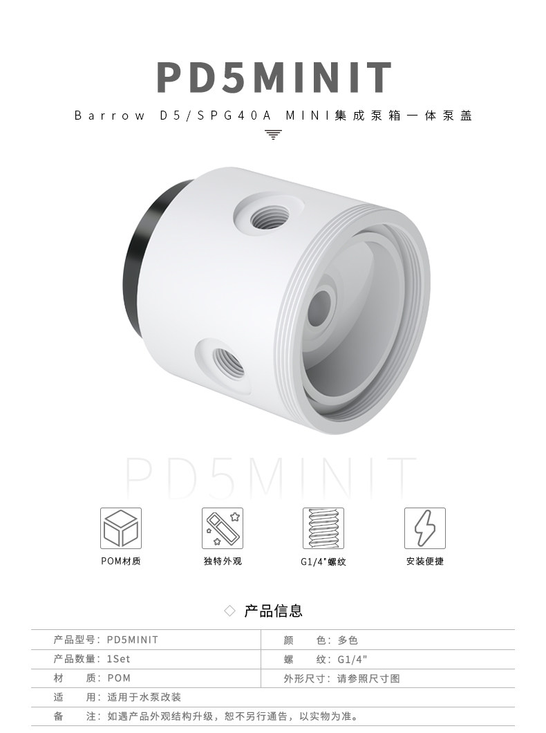 Barrow D5/SPG40A 黑/白/透明 MINI集成泵箱一体泵盖PD5MINIT