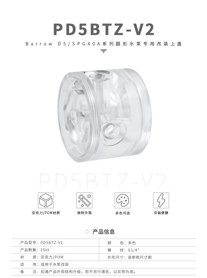 Barrow D5/MCP655系列水泵专用改装上盖拓展水箱组件 YKD5G65系列 PD5BTZ-V2