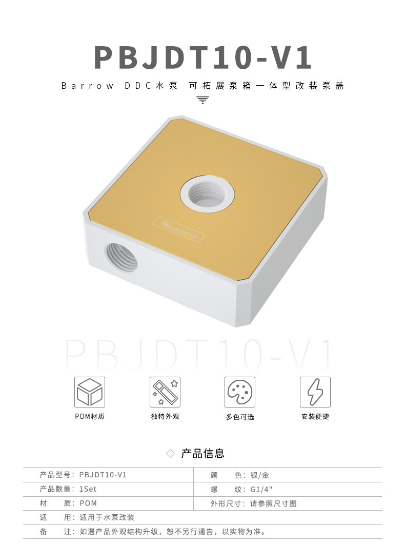 Barrow 镜面白金/白钛 DDC 水泵改装上盖 水泵上盖PBJDT10-V1