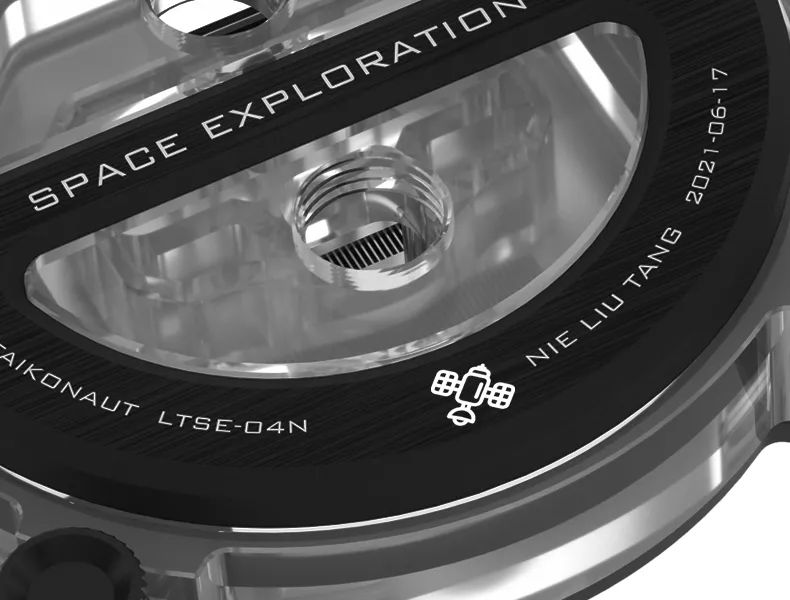 在冷头左下方镭雕有“TAIKONAUT”中国宇航员专属单词,这个单词已被牛津词典收录,这表示中国在太空领域的成就已经被国际所认可,中国已跻身于国际航天事业前列。
