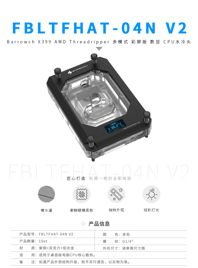 Barrowch AMDThreadripper X399 TRX4彩屏水冷头FBLTFHAT-04N V2