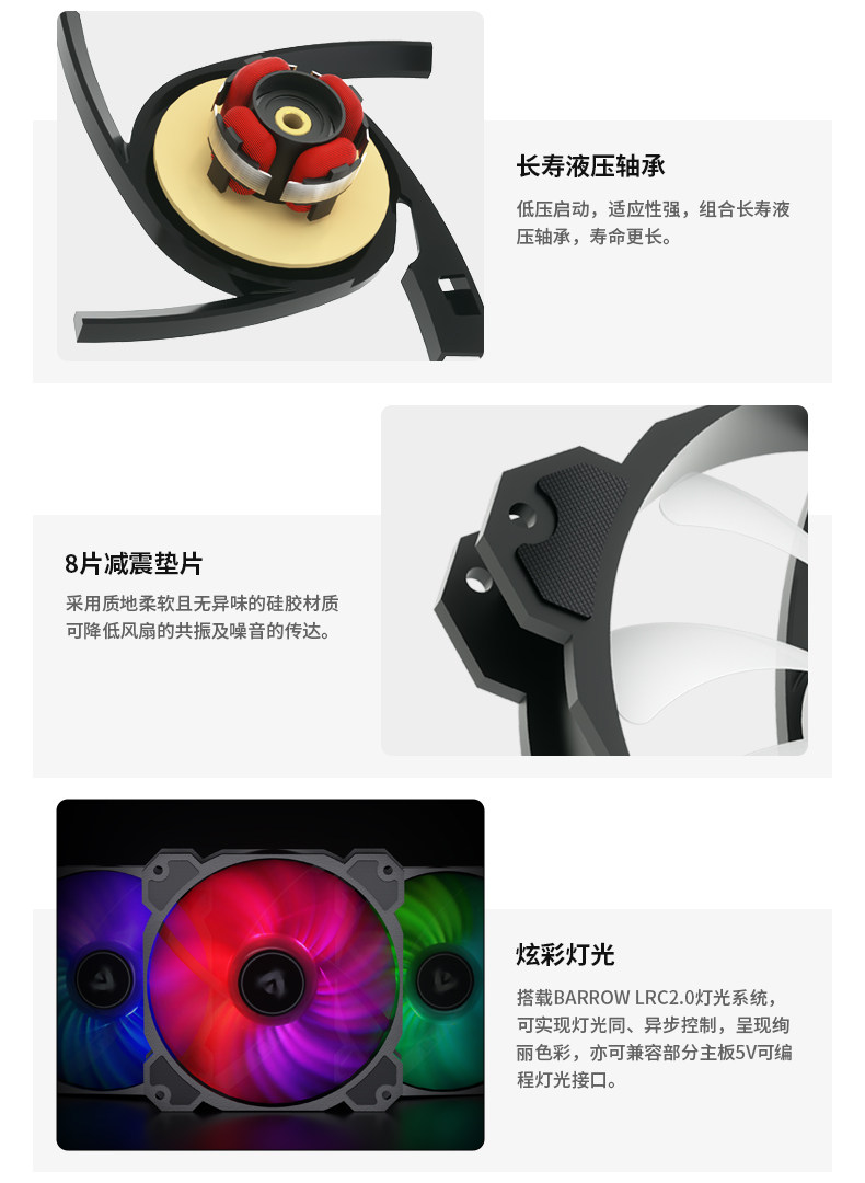 Barrow RGB 炫彩 灯光调速一体式风扇 液压轴承 PWM调速 BF04-PR