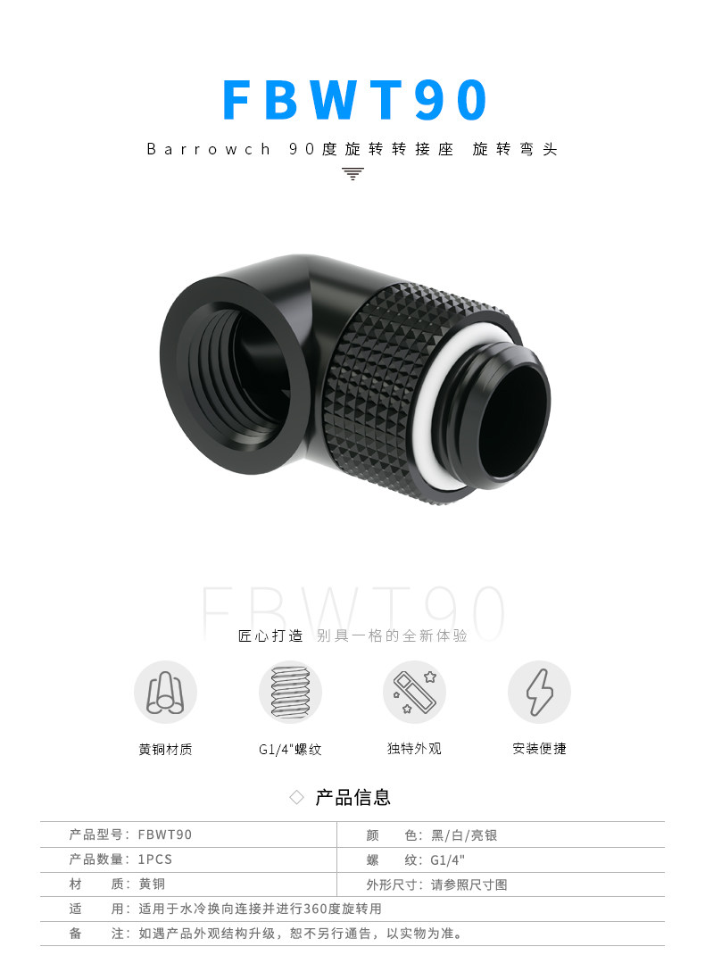 Barrowch G1/4"黑/亮/白 90度旋转转接座 旋转弯头 FBWT90