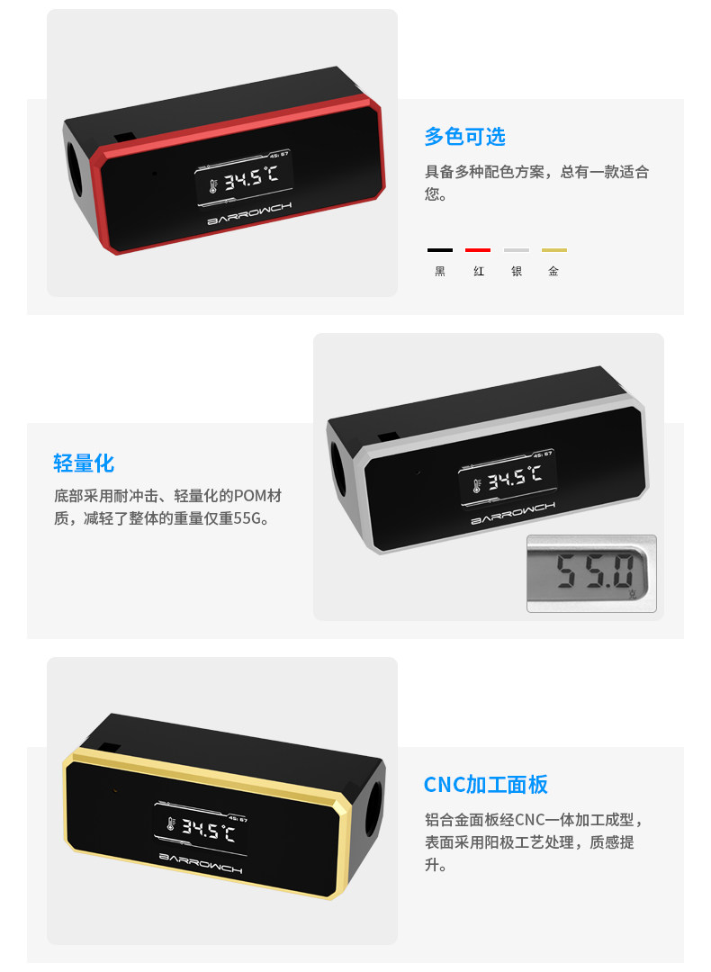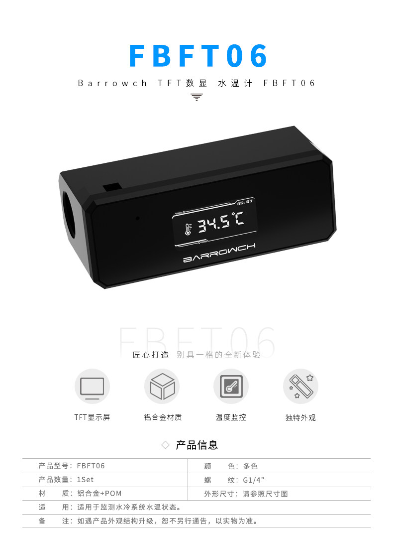 Barrowch TFT数显 水温计 水冷系统 温度监测器 温度计 FBFT06