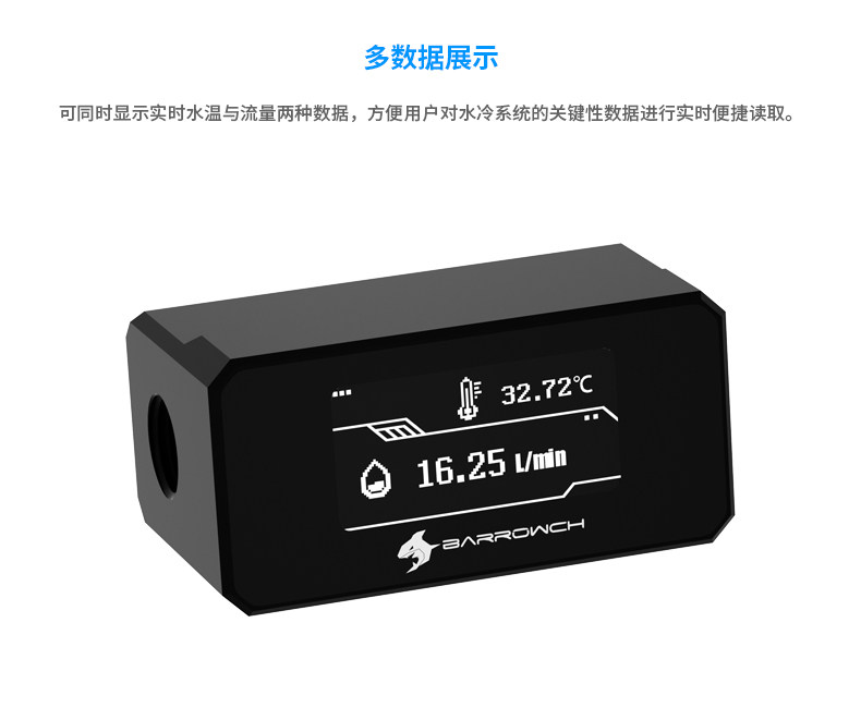 Barrowch 水冷系统 OLED数显 流量水温计 实时流量水温监测FBFT07