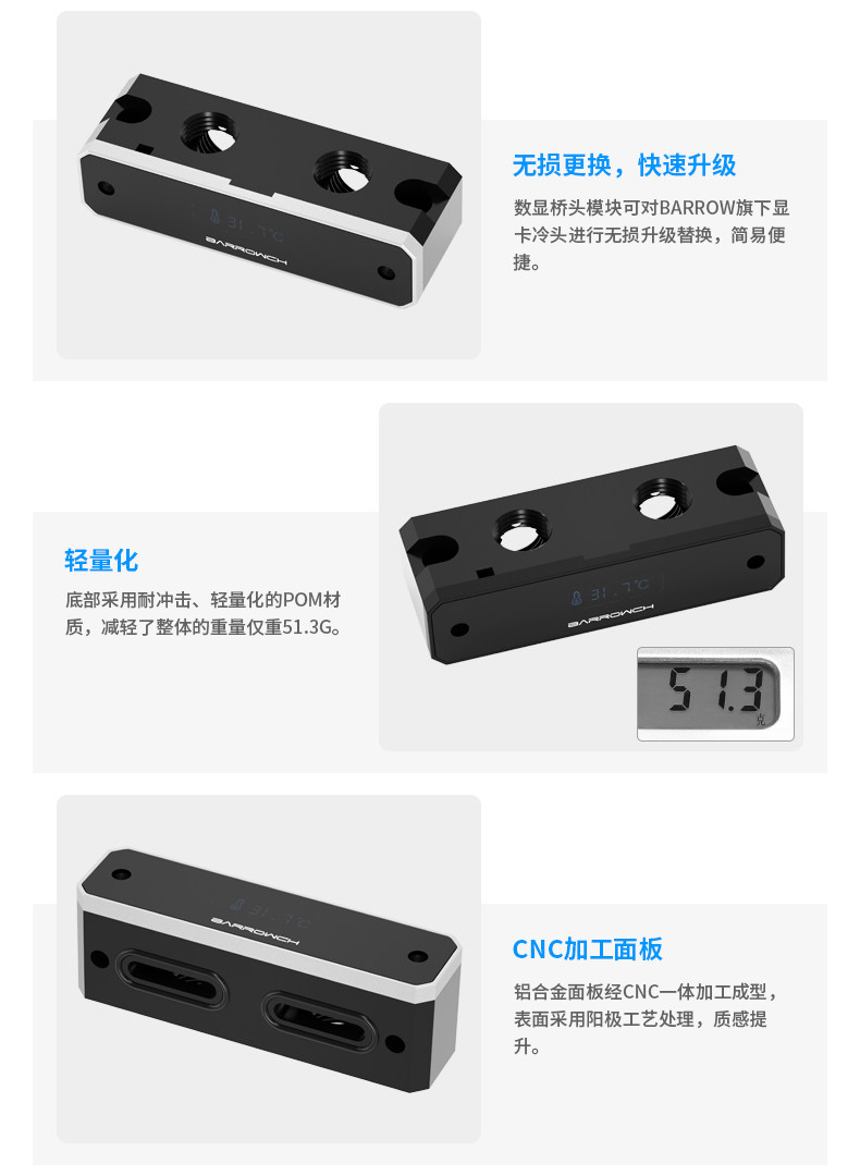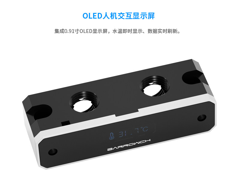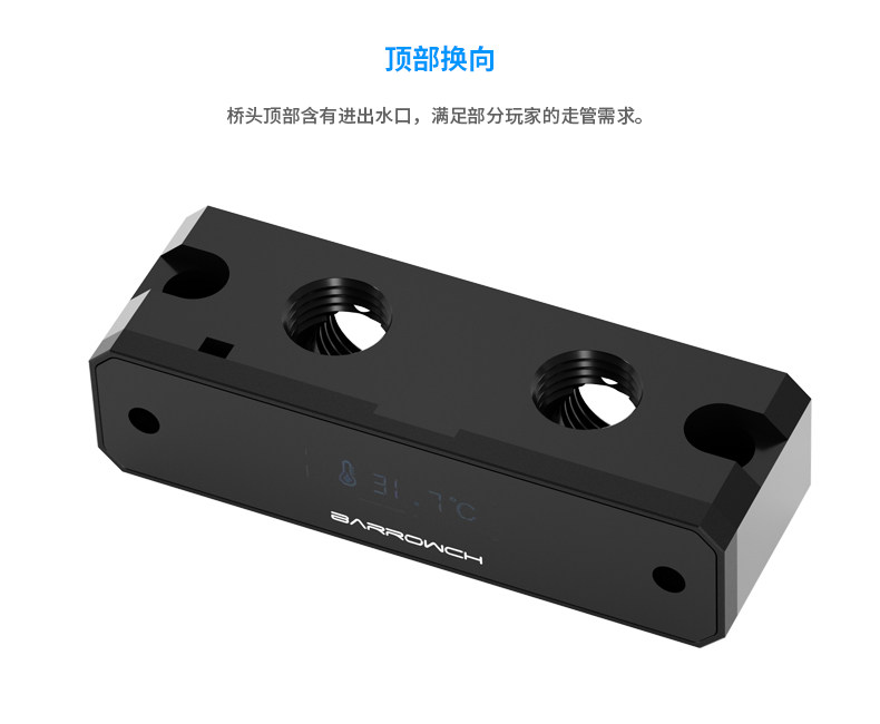 Barrowch 数显 显卡水冷头立式专用 90度桥头 桥接器 FBQTS90-01