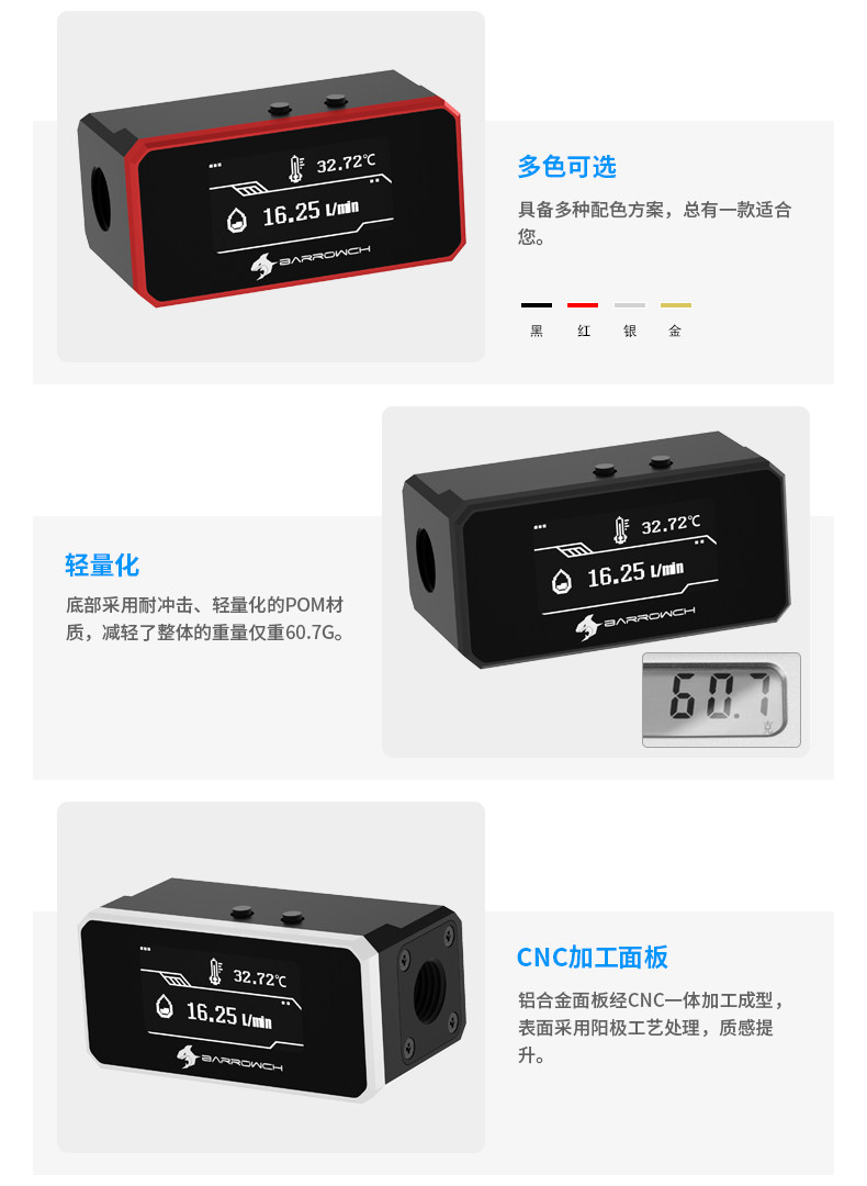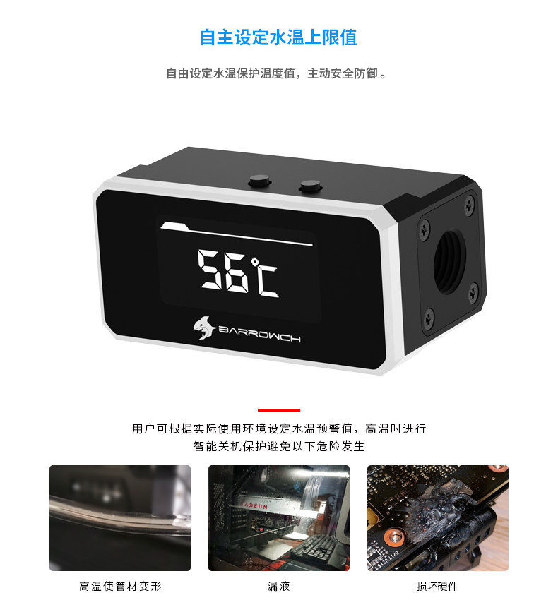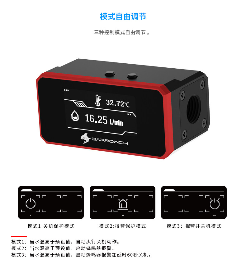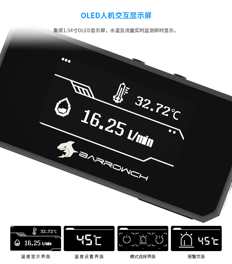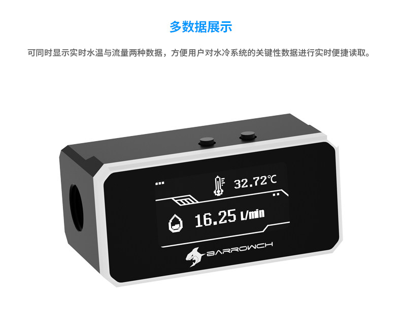 Barrowch OLED 智能水温保护器 监测报警 水温计流量计 FBFT04 V2