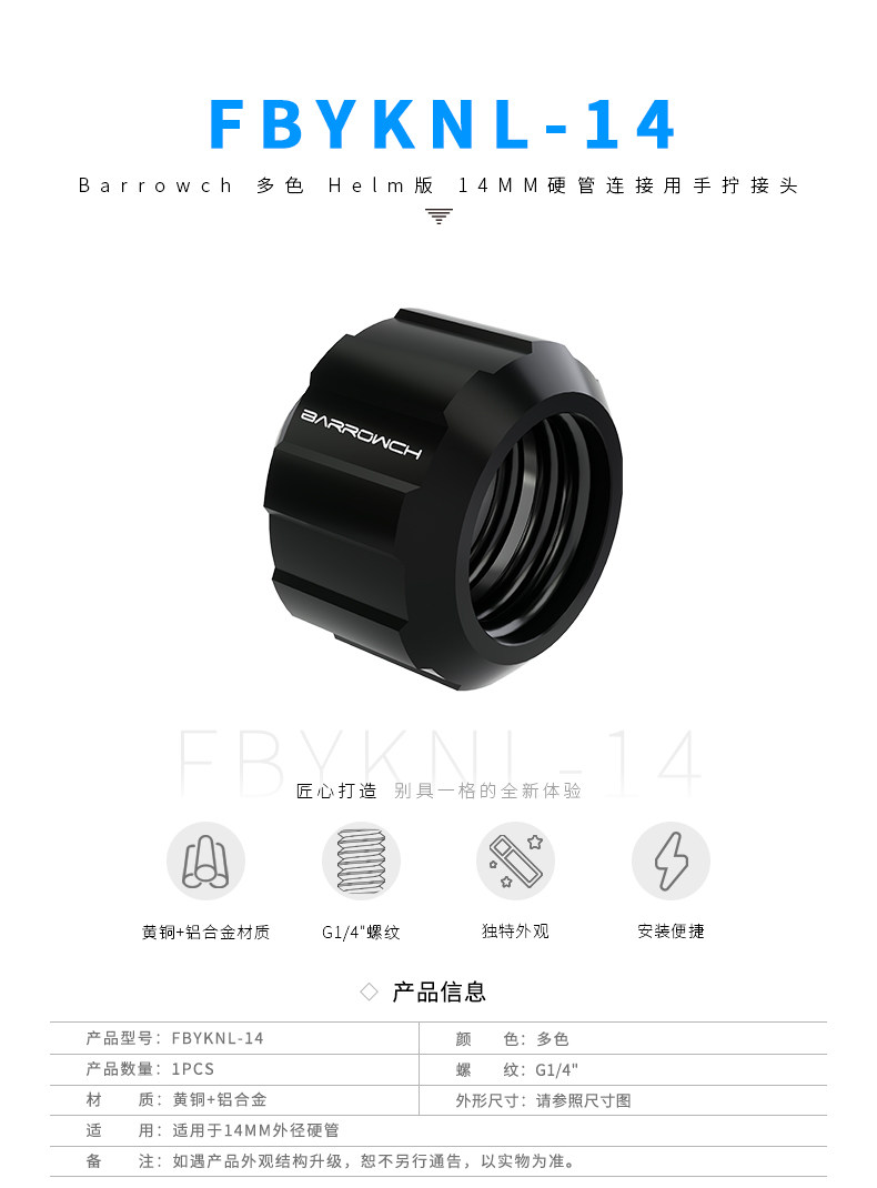 Barrowch 多色 Helm版 14MM硬管连接用手拧接头FBYKNL-14