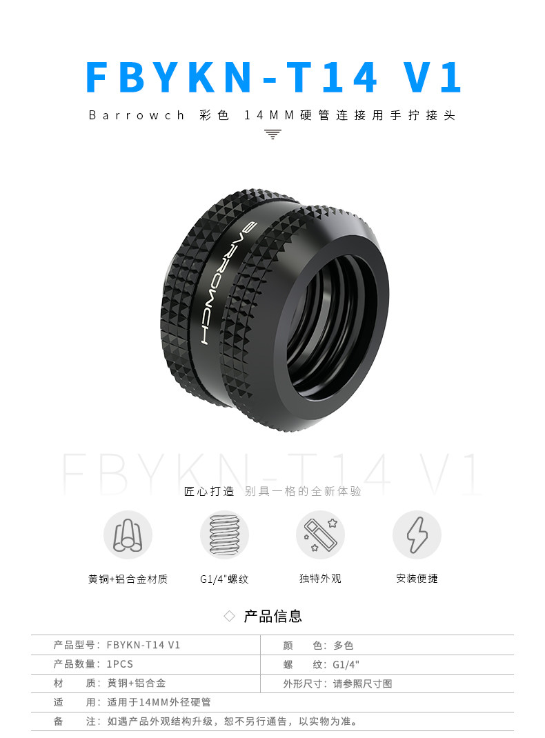 Barrowch 彩色 14MM硬管连接用手拧接头