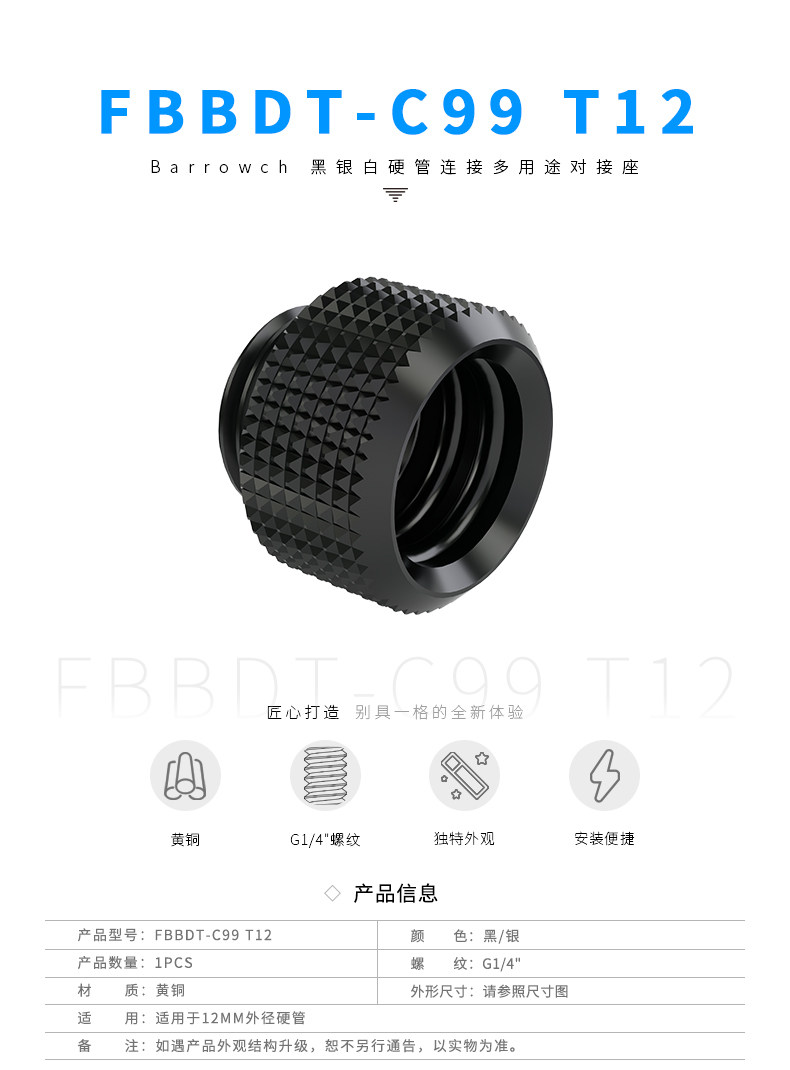 黑/银/白硬管连接多用途对接座FBBDT-C99 T12适用12MM管 FBBDT-C99 T12