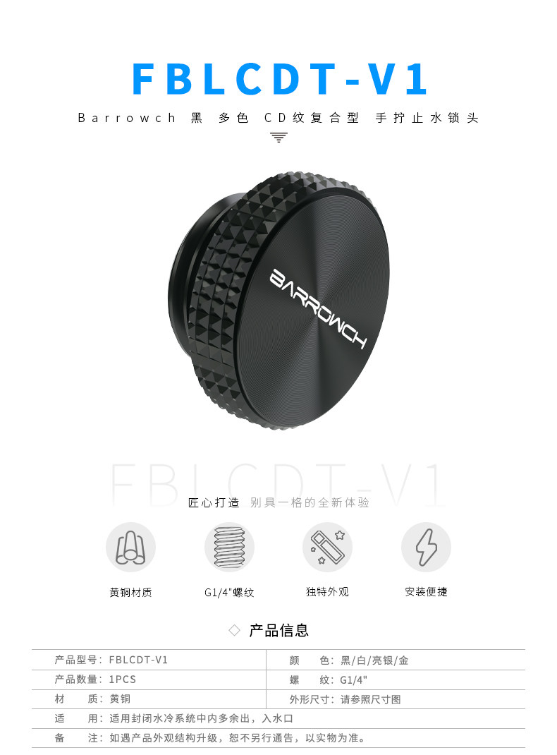 Barrowch 黑 多色 CD纹复合型 手拧止水锁头 FBLCDT-V1
