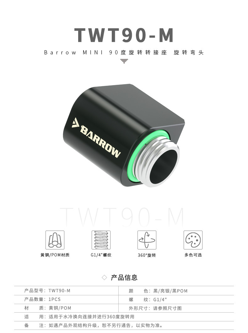 Barrow MINI 90度旋转转接座 超矮21MM 旋转弯头 水冷接头TWT90-M