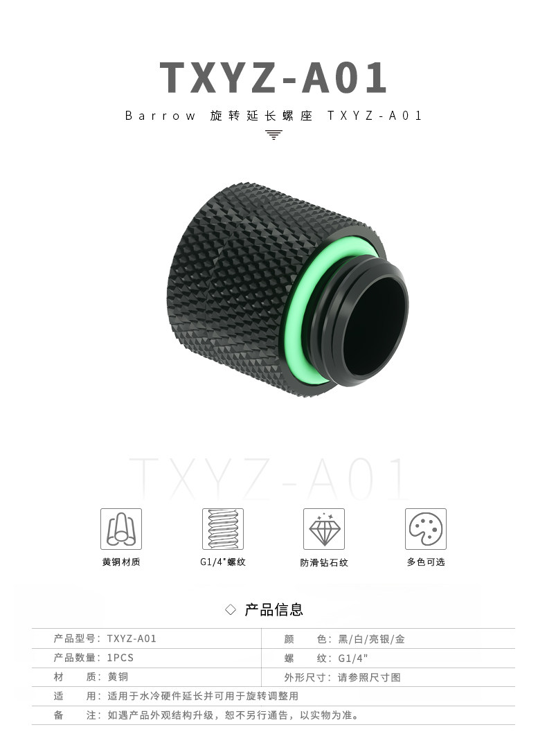Barrow G1/4" 黑/亮银/白 旋转延长螺座 TXYZ-A01
