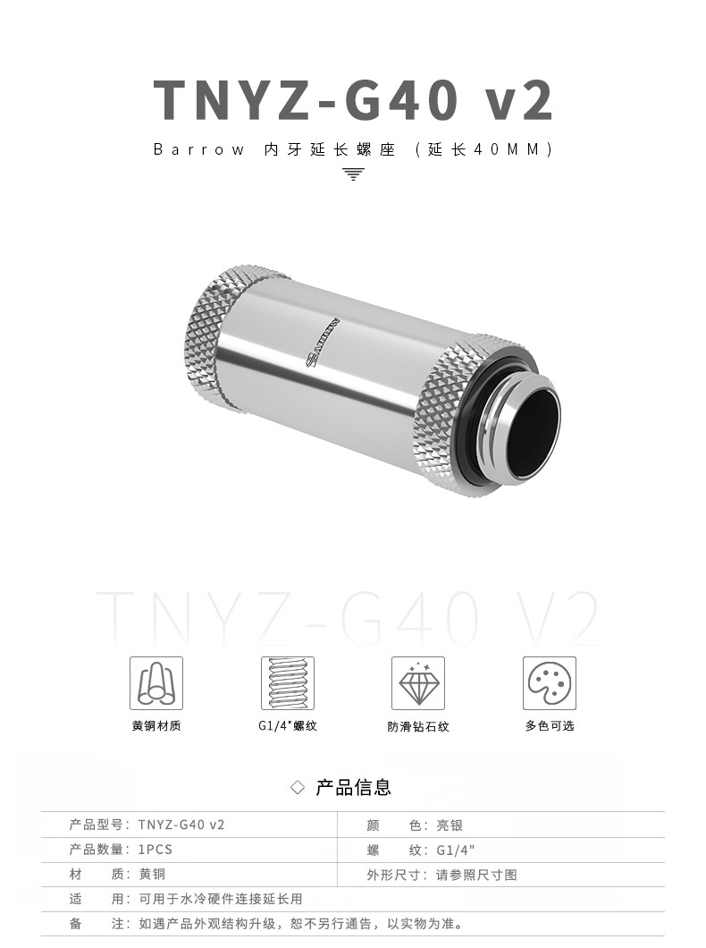 Barrow G1/4" 黑/亮银/白/金 内牙延长螺座 (延长40MM)TNYZ-G40 v2