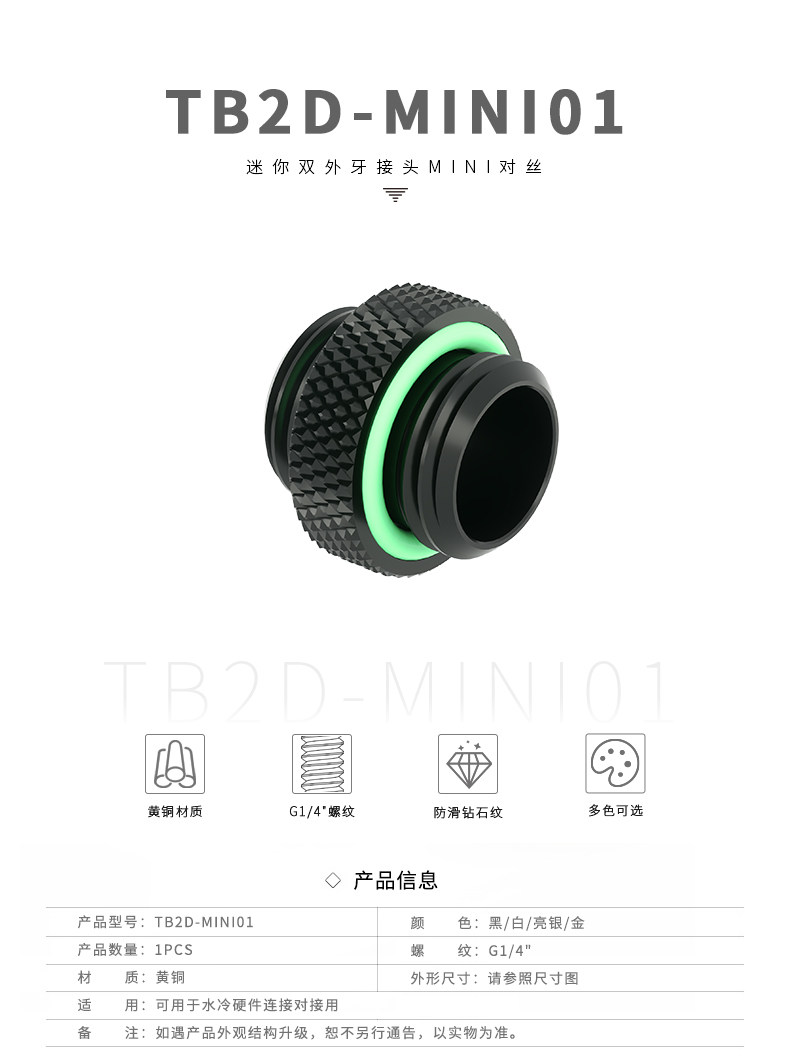 Barrow G1/4" 黑/亮银/金/白 迷你双外牙接头MINI对丝TB2D-MINI01