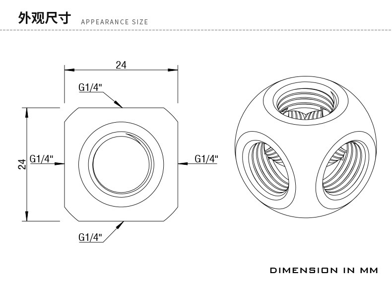 Barrow G1/4"X5 黑/亮银/白/金 五通立方型转接座 TLFT5T-A01