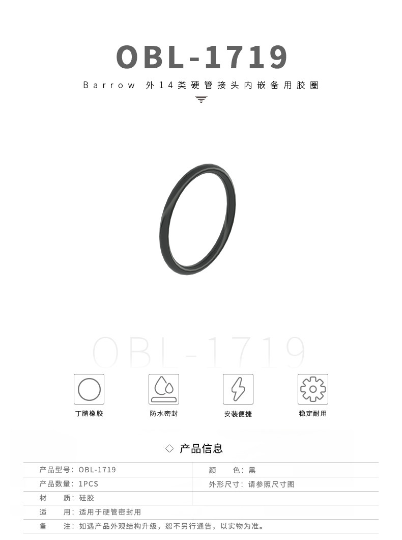 Barrow 外14类硬管接头内嵌备用胶圈 丁腈O型圈 密封圈 OBL-1719