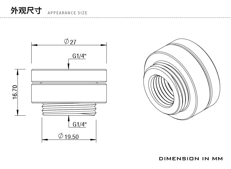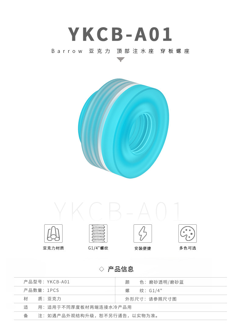 Barrow G1/4" 頂部注水座(机箱穿透) 穿板螺座 YKCB-A01