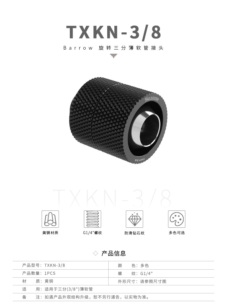 Barrow 黑/亮银/白 三分(3/8")薄管用 360°旋转接头 TXKN-3/8