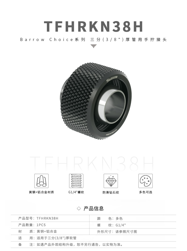 Barrow Choice系列 三分厚管用手拧接头 彩色快拧TFHRKN38H