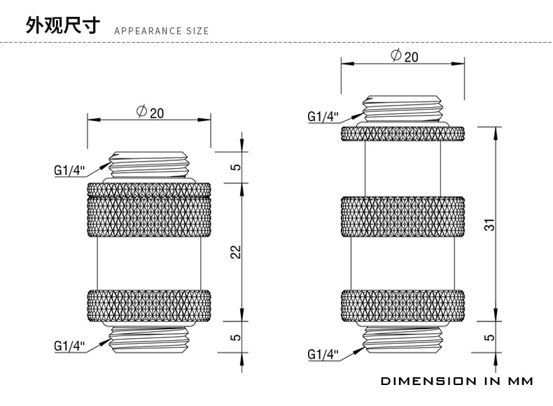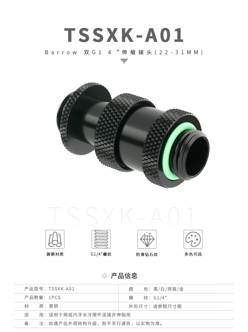 Barrow 黑/亮银/白/金 双G1/ 4"伸缩接头(22-31MM) TSSXK-A01