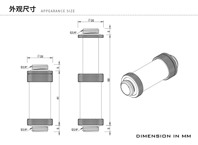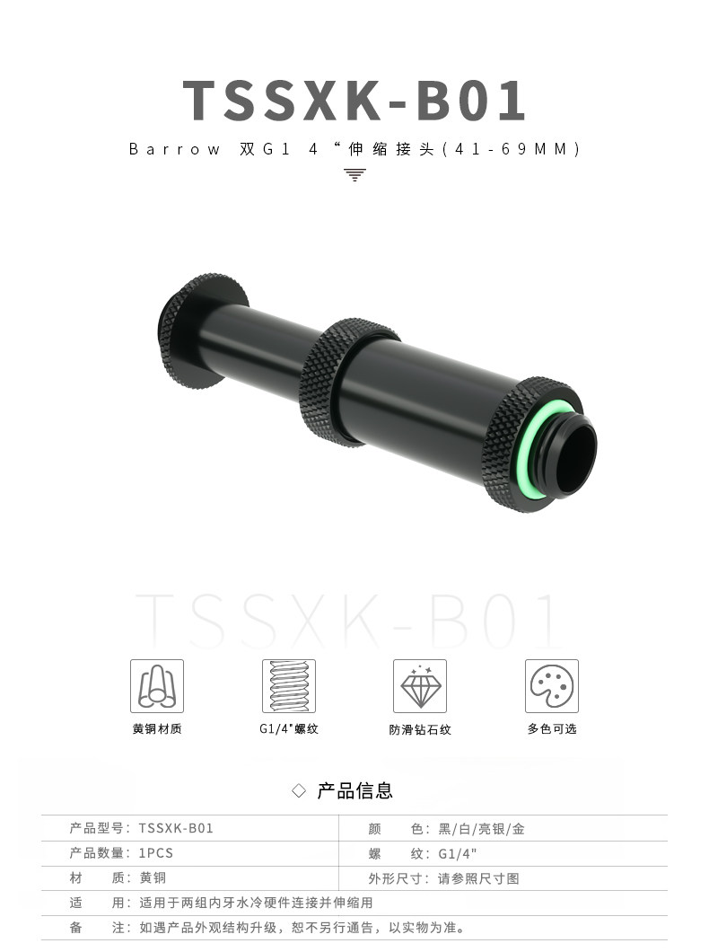 Barrow 黑/亮银/白/金 双G1/ 4"伸缩接头(41-69MM) TSSXK-B01