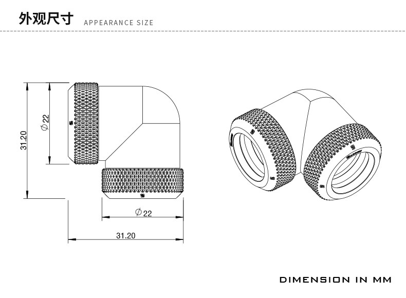 Barrow 亮银/黑/白/金 14MM90度双头硬管手拧对接座 TWT90KNS-K14
