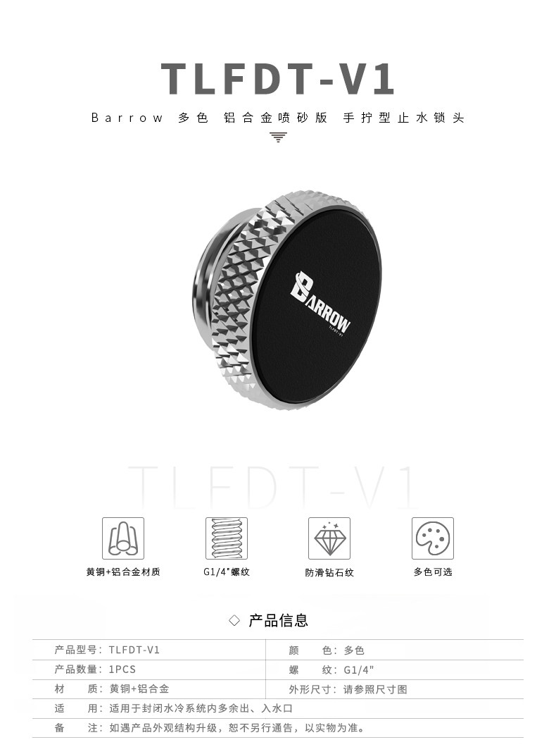 Barrow 亮银 多色 铝合金喷砂版 手拧型止水锁头 TLFDT-V1