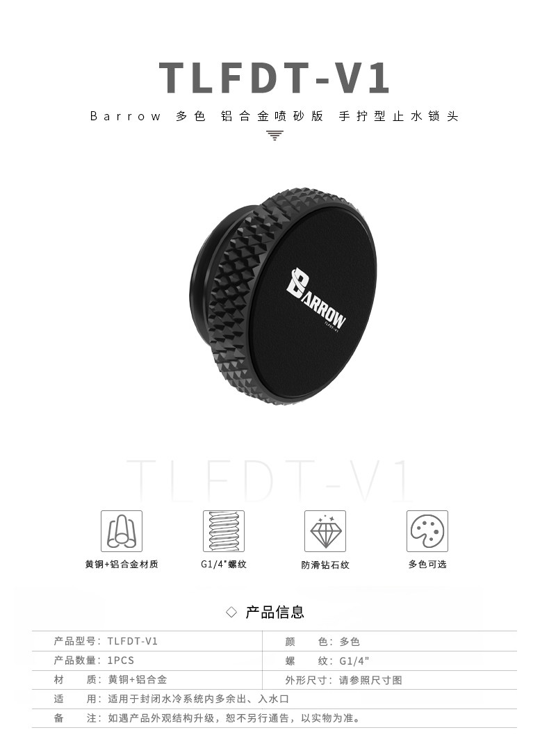 Barrow 黑 多色 铝合金喷砂版 手拧型止水锁头 TLFDT-V1