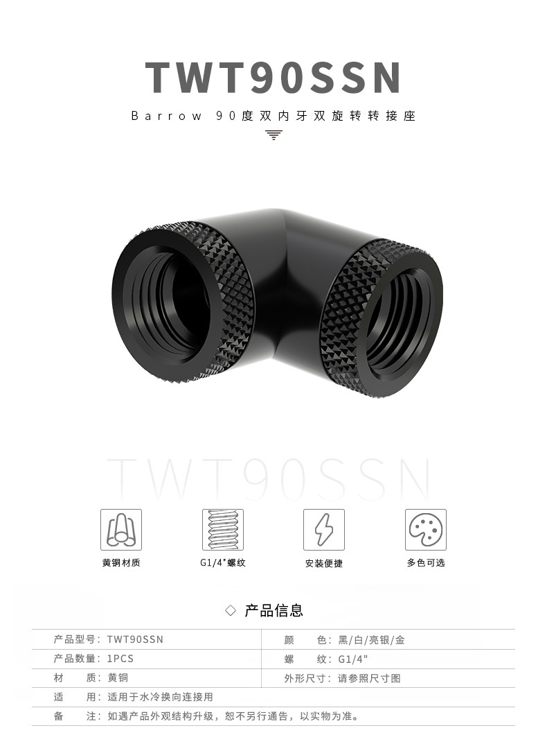 Barrow G4/1" 黑/亮银 90度双内牙双旋转转接座 TWT90SSN